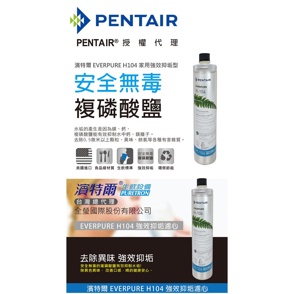 來領卷啦~ 大漢DH Water原廠雷標【EVERPURE】濱特爾原廠貨 Everpure H104 除鉛濾心