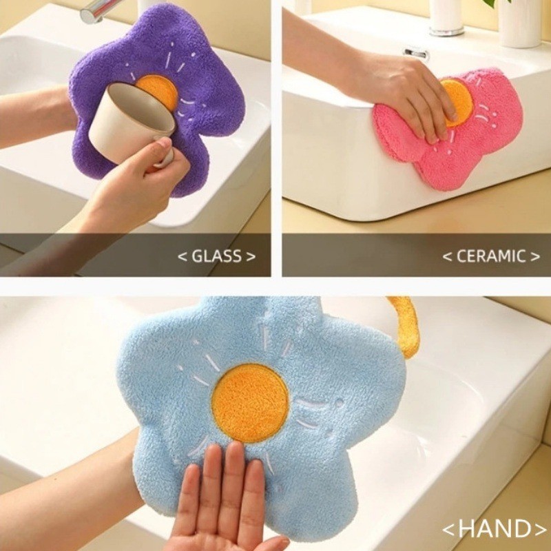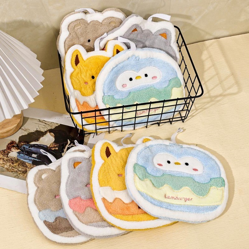 便攜家用熊貓手巾可愛百潔布可重複使用珊瑚絨清潔布超吸水速乾掛巾