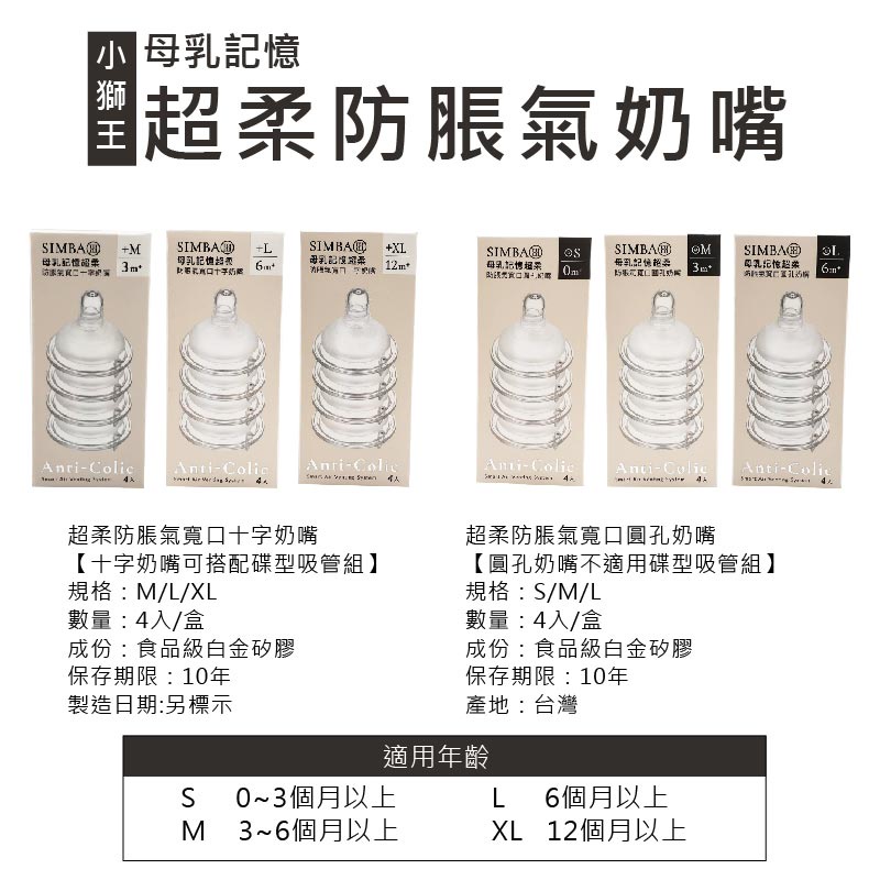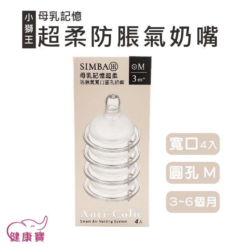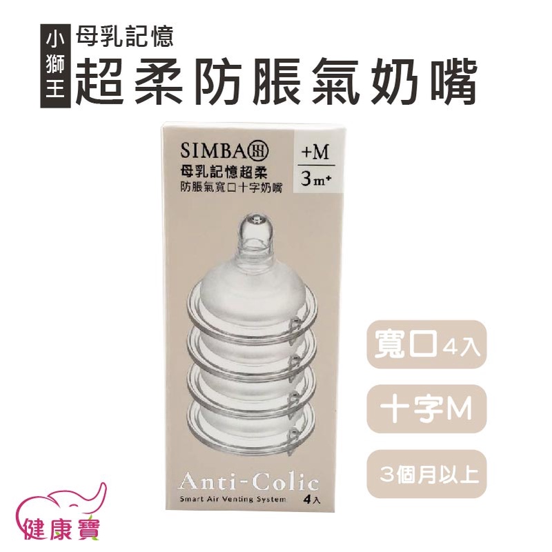 健康寶 Simba小獅王辛巴 母乳記憶超柔 防脹氣奶嘴 寬口十字/圓孔 4入/盒 新生兒奶嘴 寬口奶嘴 奶瓶奶嘴