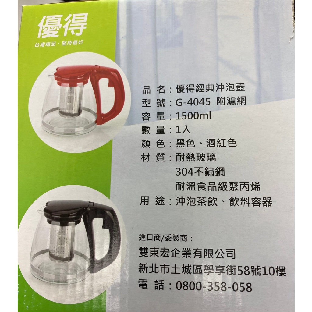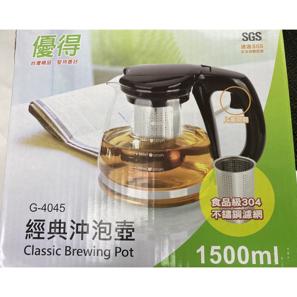 優得經典沖泡壺 耐熱玻璃茶壺1500ml 茶具泡茶壺 透明 304不銹鋼 耐高溫 茶壺 密封 G-4045