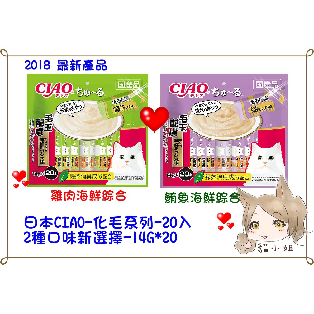 優惠商品日本貓肉泥 現貨 效期新【貓最愛】日本CIAO啾嚕肉泥20入,寒天肉泥20入、化毛口味貓咪新選擇