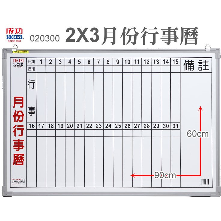 優質》60x90cm月份行事曆白板(成功白板2*3磁性白板磁白板)成功白板高級白板