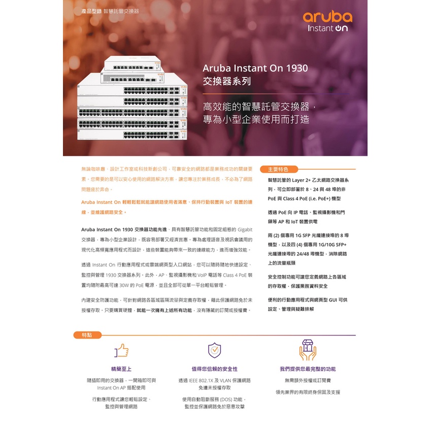 光華門市*台灣公司貨/附發票【JL682A】HP Aruba IOn 1930 24G 4SFP/SFP+ 交換器