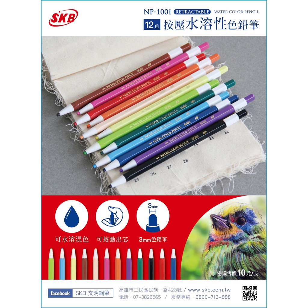 免削色鉛筆 NP-1001 按壓水溶性色鉛筆 12色入 SKB 按鍵式 色鉛筆 水溶性(袋裝)