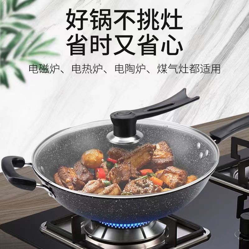 免運✨清倉處理 炒鍋加厚麥飯石不粘鍋炒菜鍋具家用電磁爐專用燃氣適用平底鍋鐵鍋