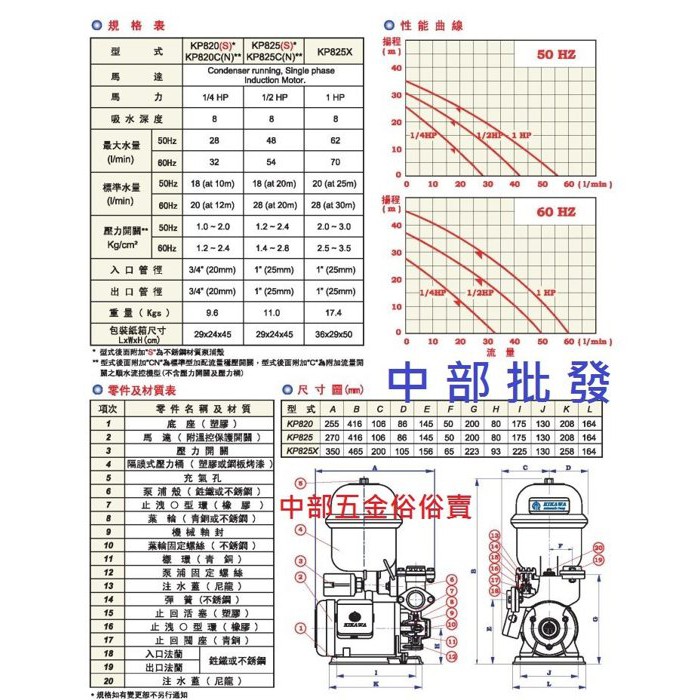耐用款 中部批發 KP825 KP825X 鋁殼木川馬達 1HP 加壓馬達 木川泵浦經銷商 壓差加壓機 傳統式加壓機