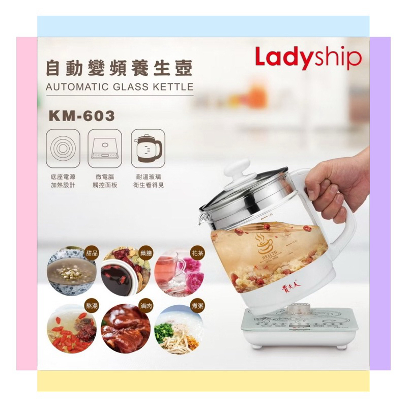免運促銷~~㊣原廠公司貨㊣~【Ladyship 貴夫人】1.8L智慧變頻養生壺/快煮壺(KM-603) 耐熱玻璃壺