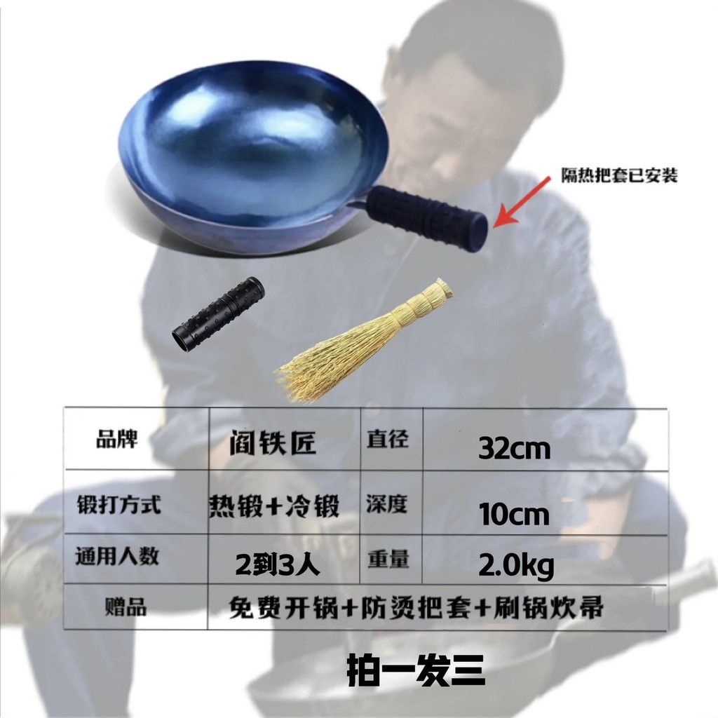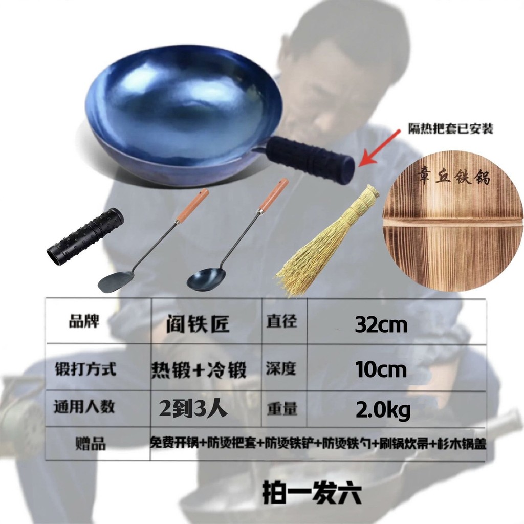 免運 公司貨✨老式鐵鍋 中式炒鍋 黑鐵鍋 閻鐵匠正宗章丘純手工鍛打鐵鍋 不粘鍋家用老式炒鍋無塗層 快炒鍋 純鐵鍋