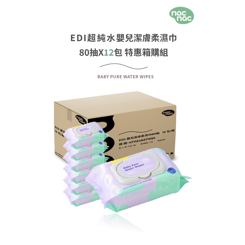 免運 nac nac EDI 超純水嬰兒潔膚柔濕巾 80抽 24包 濕紙巾 純水濕紙巾 箱購 [蝦皮代開發票]