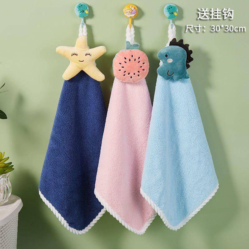 兒童可愛擦手巾小毛巾掛式吸水方巾不掉毛柔軟手帕速乾衛生間廚房