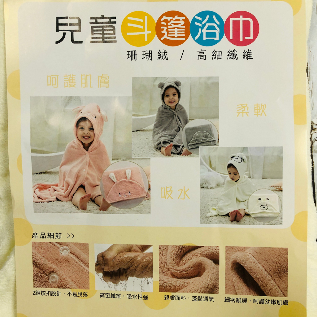 兒童斗篷浴巾 珊瑚絨 高細纖維 浴巾