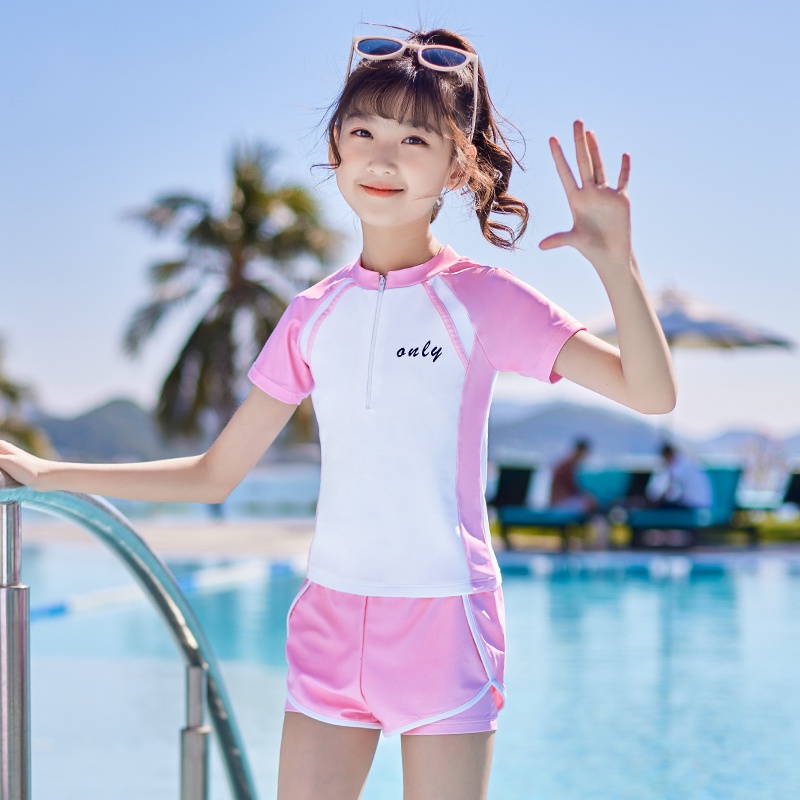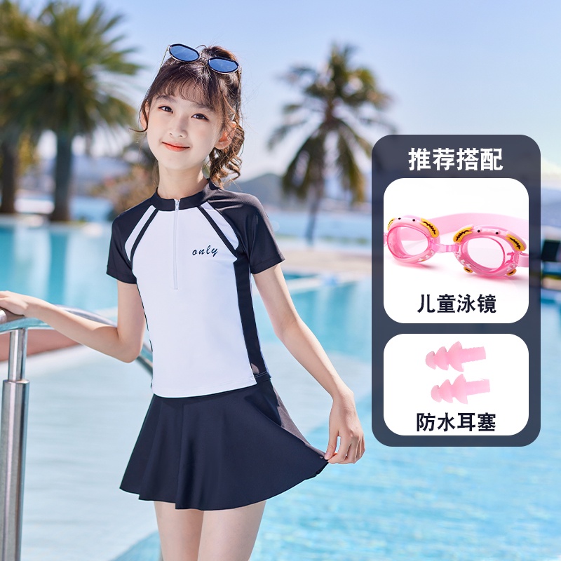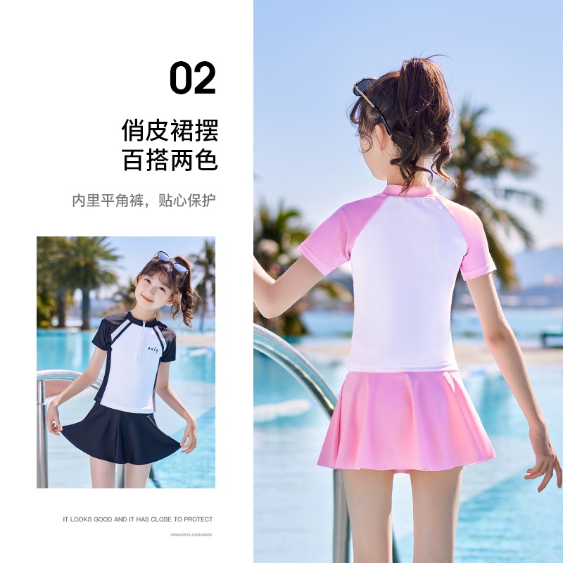 女童泳衣 分體裙式 中大童 可愛 速幹 專業 溫泉 游泳裙 兒童泳裝 防曬款