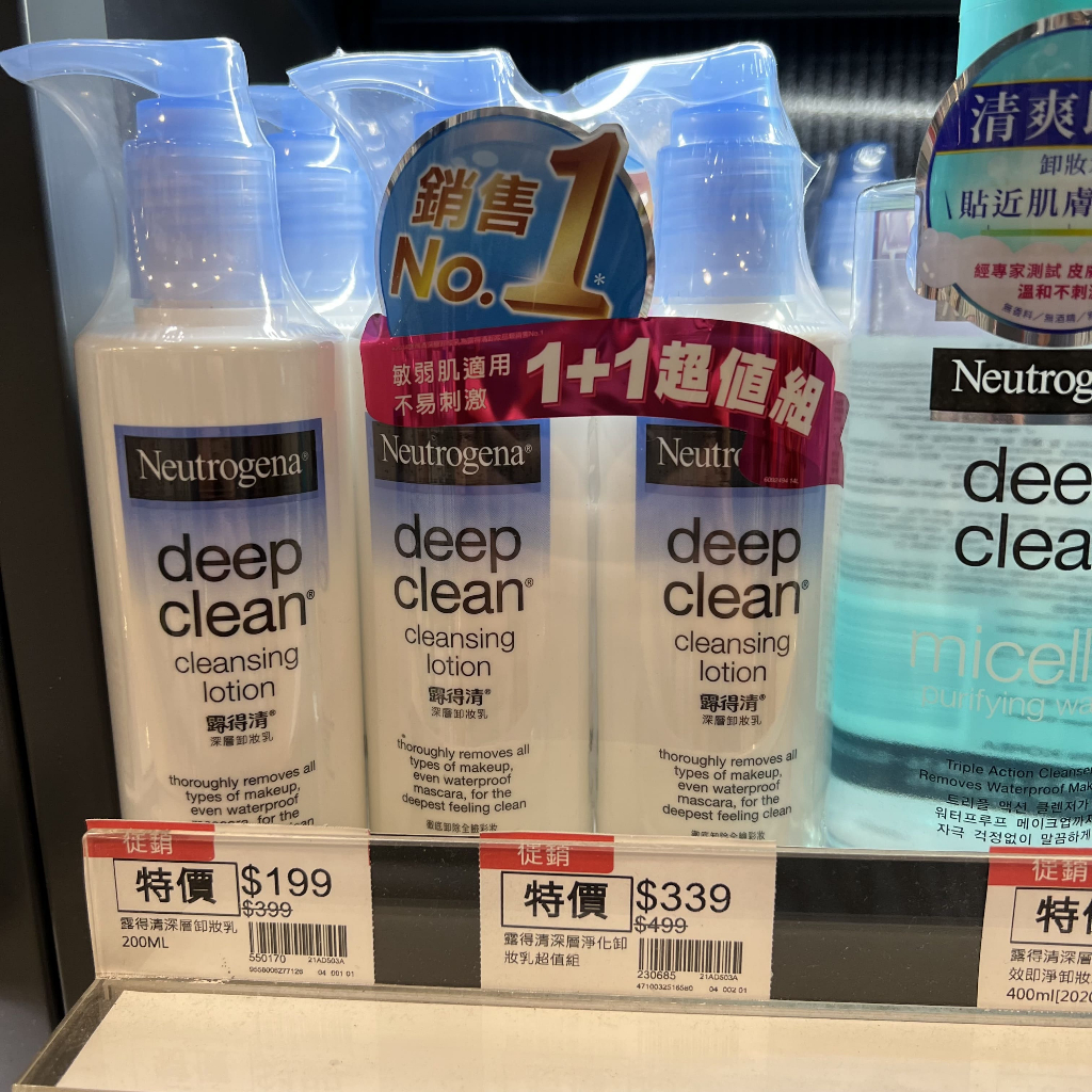 全新公司貨Neutrogena露得清深層卸妝乳200ML溫和淨化卸粧臉液水精華保濕眼唇油混合肌清爽兩入超值組男女學生凝露