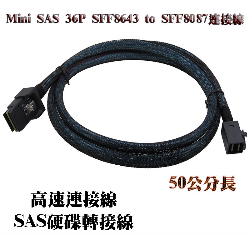 全新品 Mini SAS 36P 高密度 HD SFF-8643 to SFF-8087 連接線 硬碟數據線