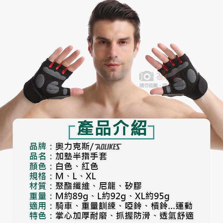 全新現貨@加墊半指手套 一雙入 奧力克斯 Aolikes 戶外騎車 重量訓練 運動健身 自行車手套 運動手套 重訓手套