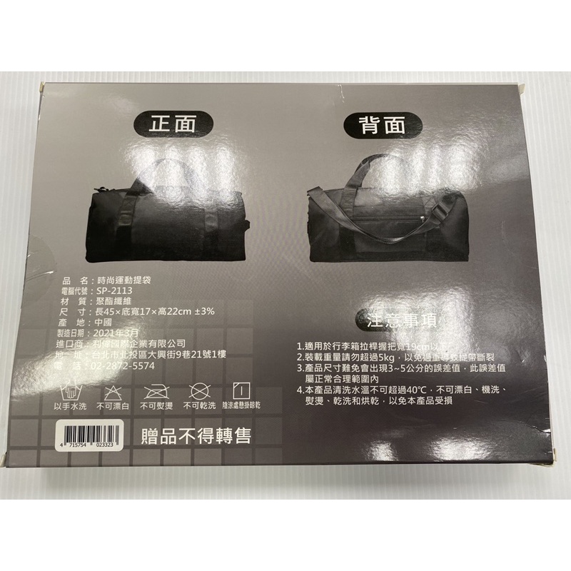 全新 時尚運動提袋(黑色)SP-2113 可當行李箱拉桿包(外包裝有贈品字樣)