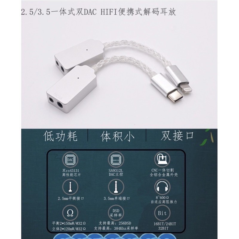 全新Hcsa 台南可試聽 雙cs43131 USB DAC 耳擴 轉接線 typec lightning