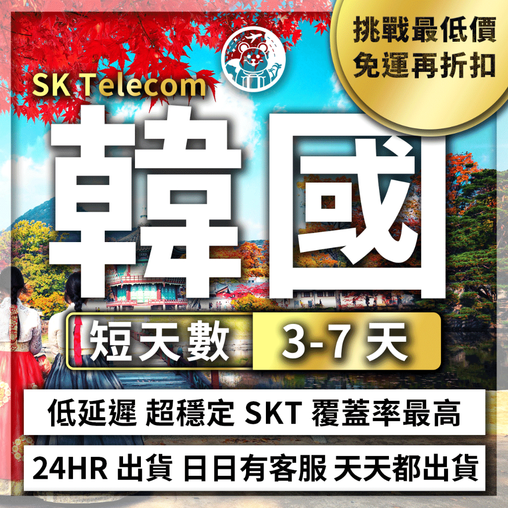 六仔電訊﹥韓國網卡 南韓 3-7天 吃到飽 SKT LG 雙電信 5G 不降速 韓國上網卡 首爾 釜山 濟州島 sim卡
