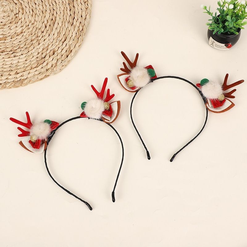 六分埔禮品★紅絨結金綠球鹿角髮箍-咖啡/紅色★(現貨/發票)-耶誕節聖誕節麋鹿髮箍麋鹿裝扮 麋鹿髮飾