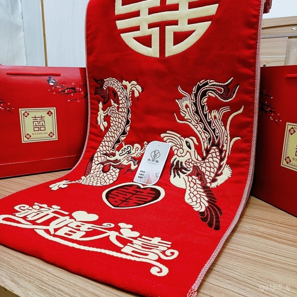 六層紗佈棉毛巾喜事禮盒不掉毛新娘出嫁龍鳳情侶毛巾紅色毛巾全棉 ZOCW