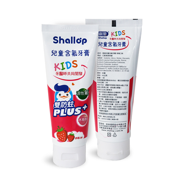 刷樂 兒童含氟牙膏 90g 木糖醇 兒童牙膏 嬰兒牙膏 青蘋果 草莓 葡萄 Shallop