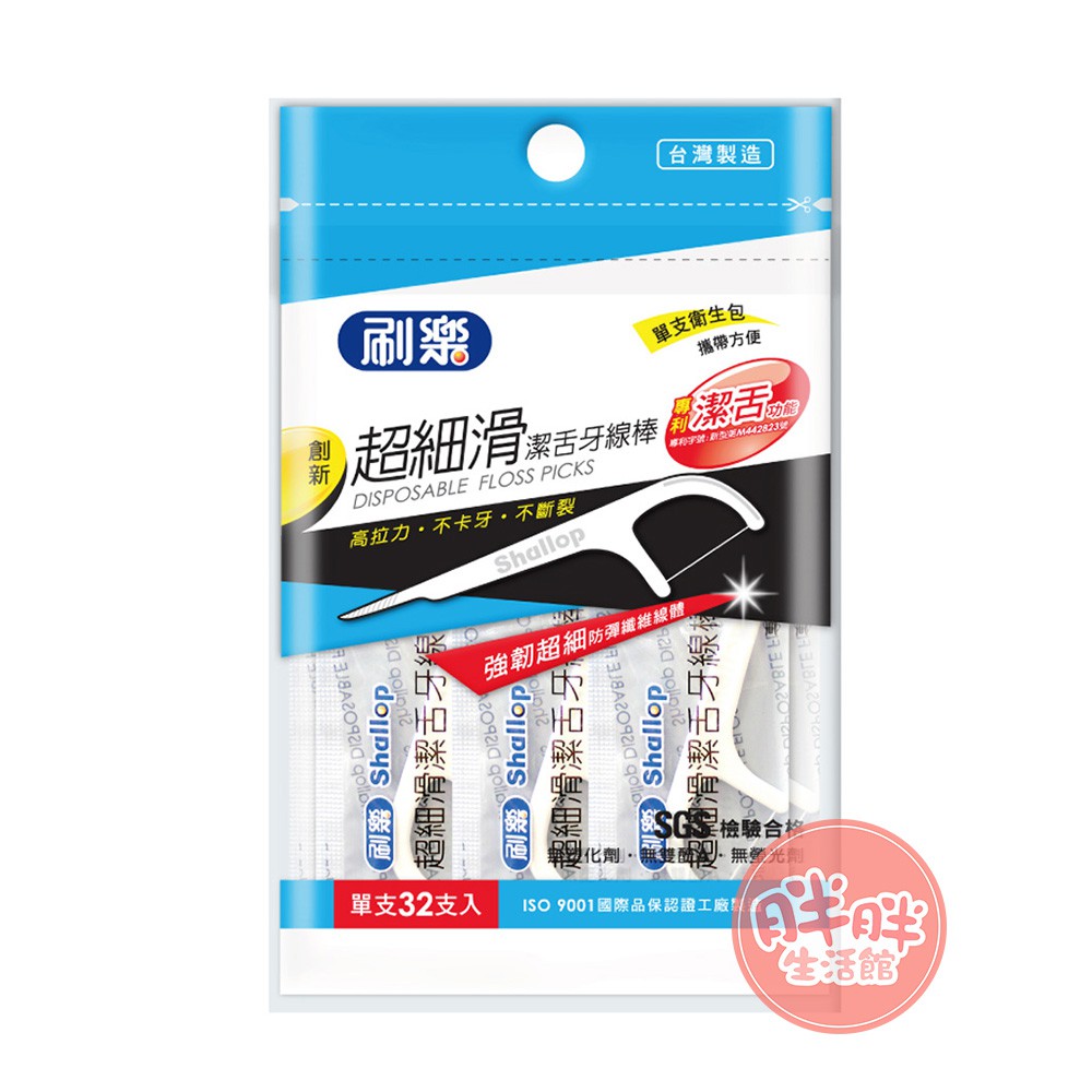 刷樂 超細滑潔舌牙線棒 衛生包 超細滑 牙線棒 牙線 32支/包 牙齒清理 牙齒清潔 家庭必備 台灣製造【胖胖生活館】
