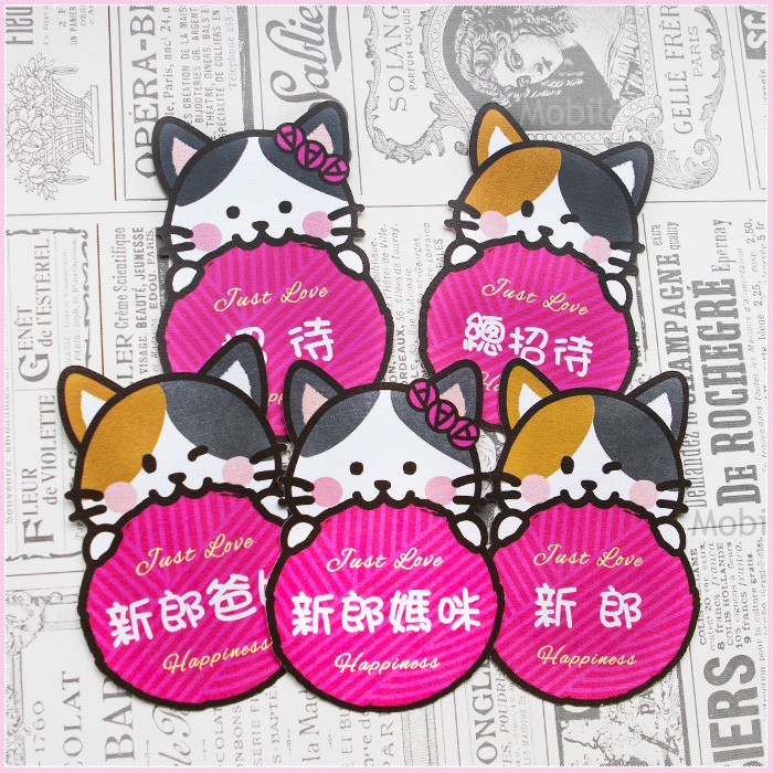 創意造型名條-「創意造型名條-就是貓起來愛系列」(可選款_附兩用別針) - 婚禮必備/公版現貨/可客製/幸福朵朵婚禮小物