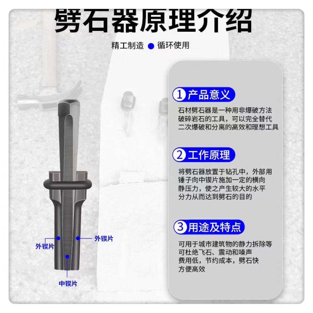劈石器楔子開石神器夾片石匠專用破石頭劈石器楔子神器開石夾片破石頭打石材工具開山鐵鑿子特鋼石匠專用水電工土木技師打壁神器