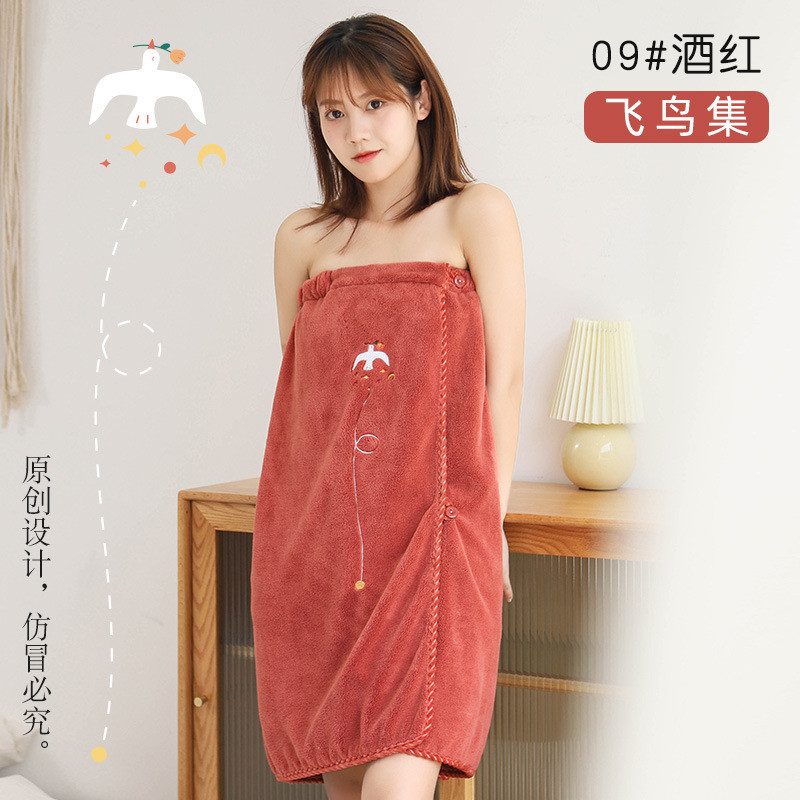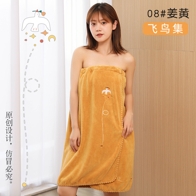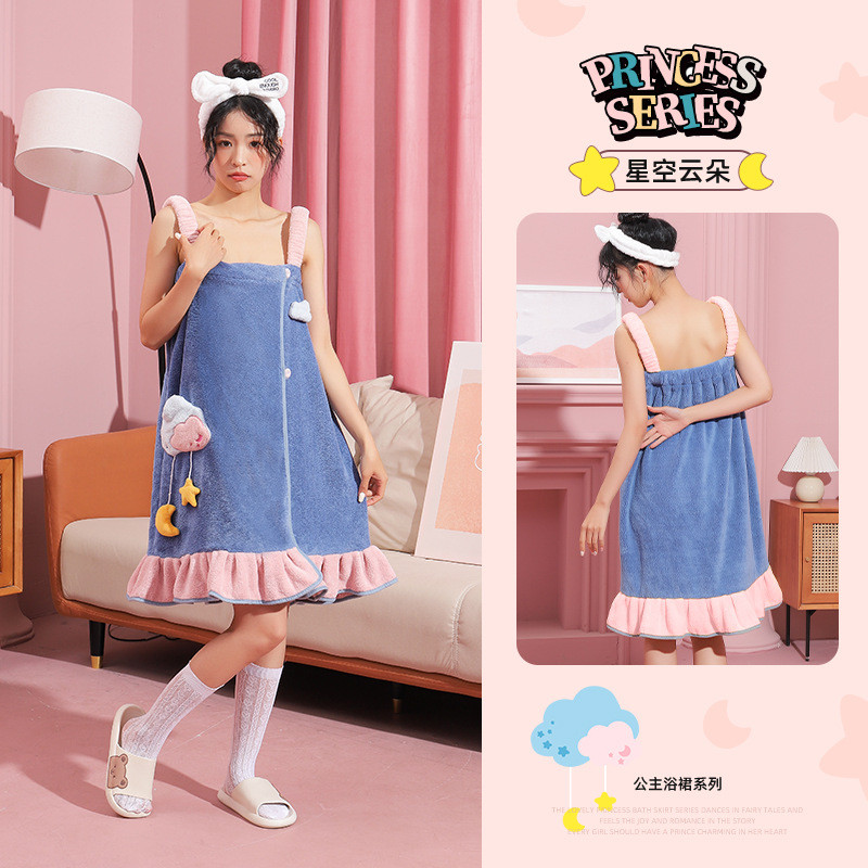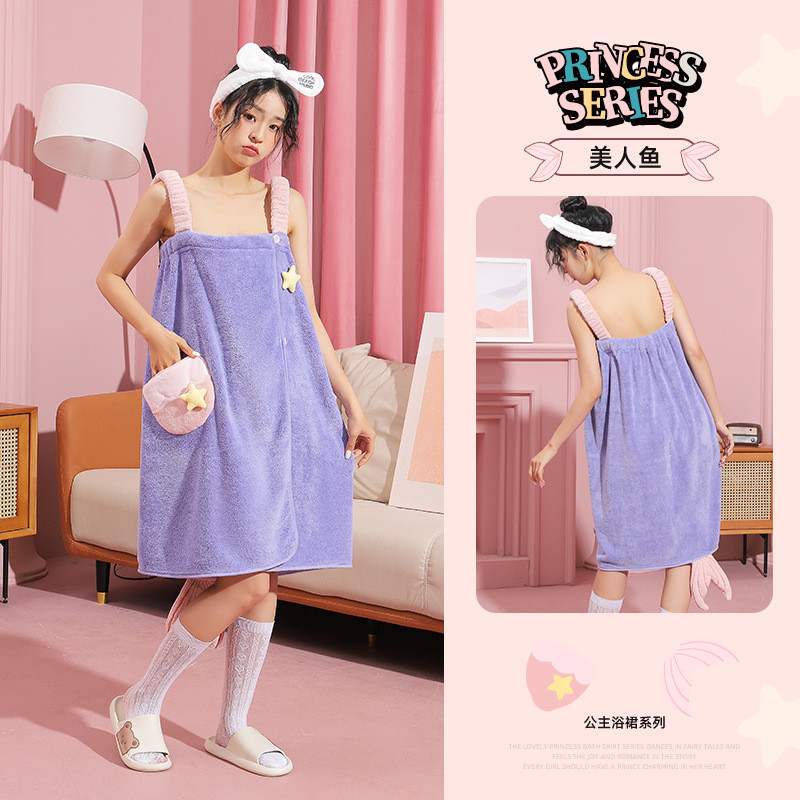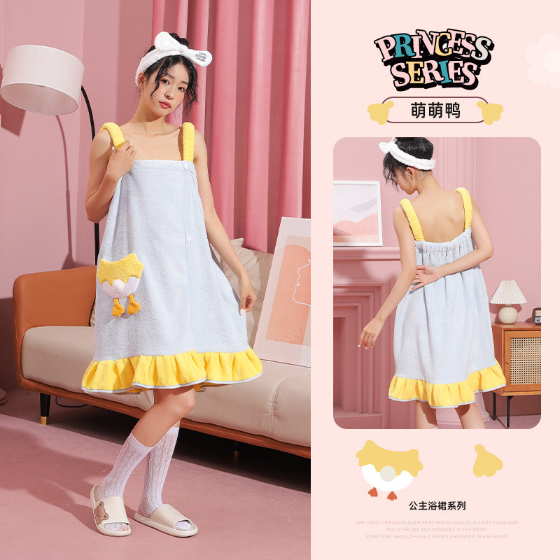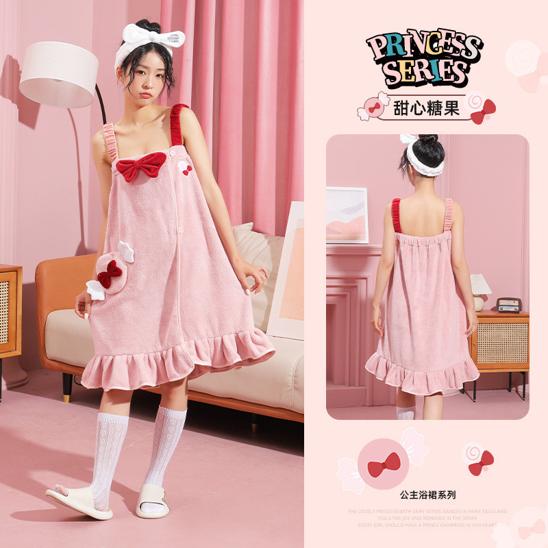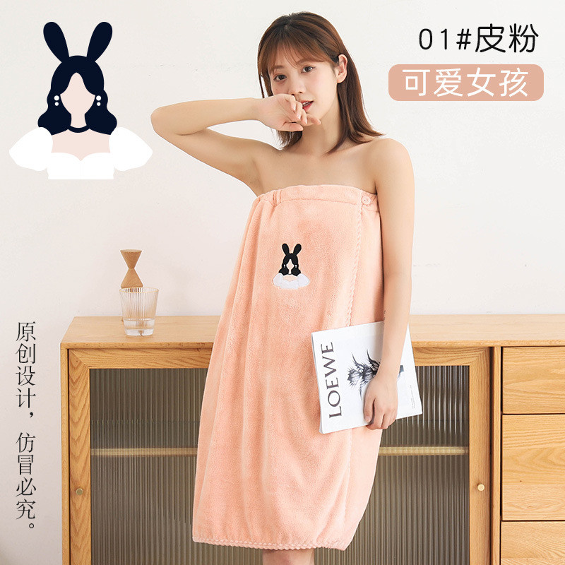 加厚女生浴巾 家用可裹珊瑚絨浴袍 洗澡吸水速幹大人吊帶浴袍 可愛浴裙