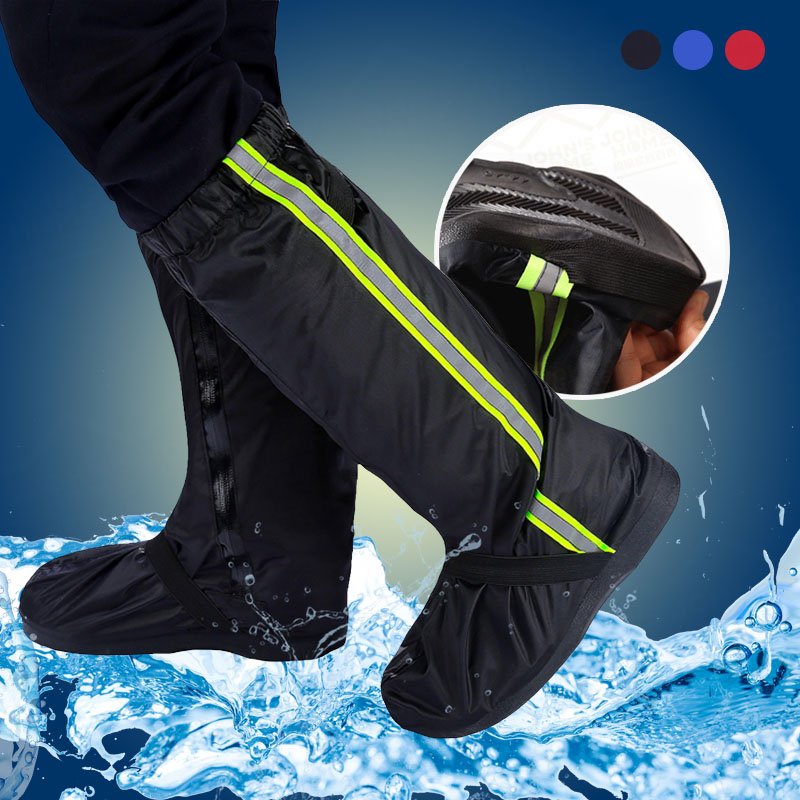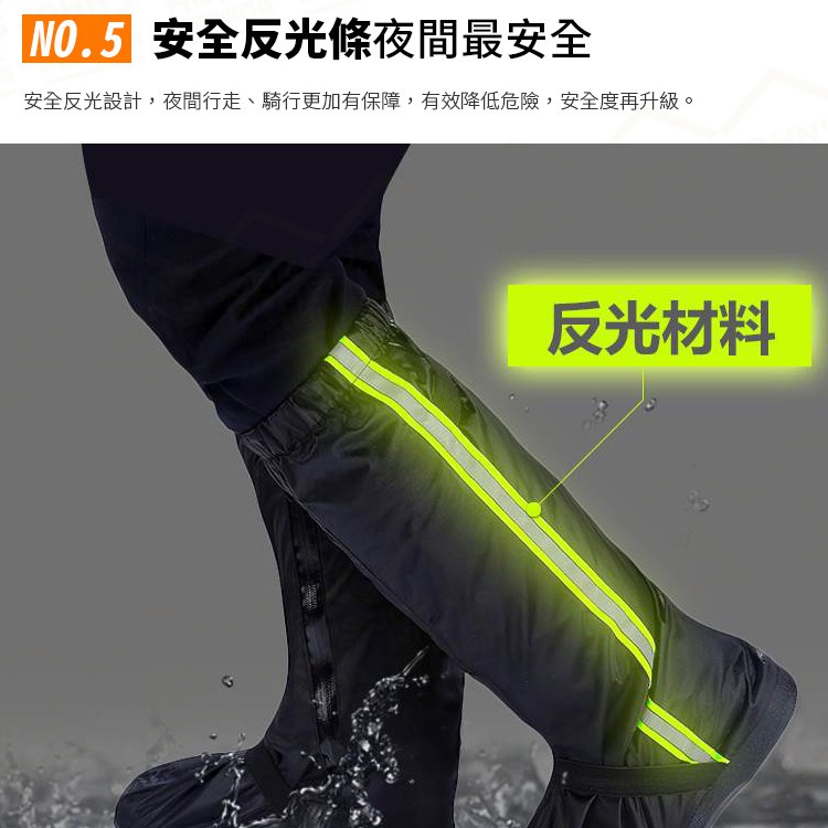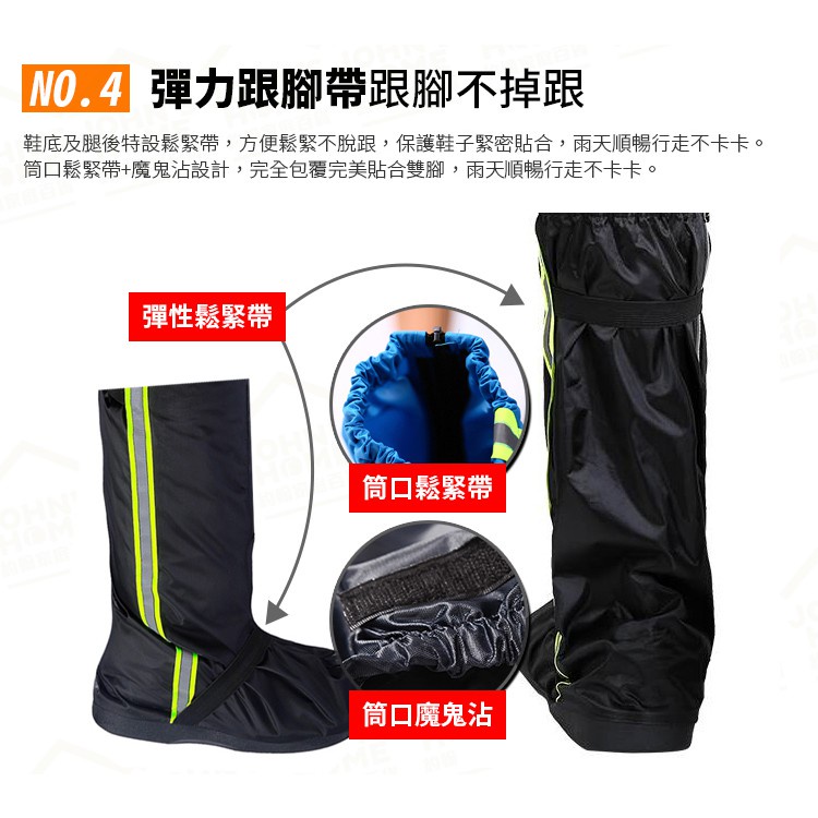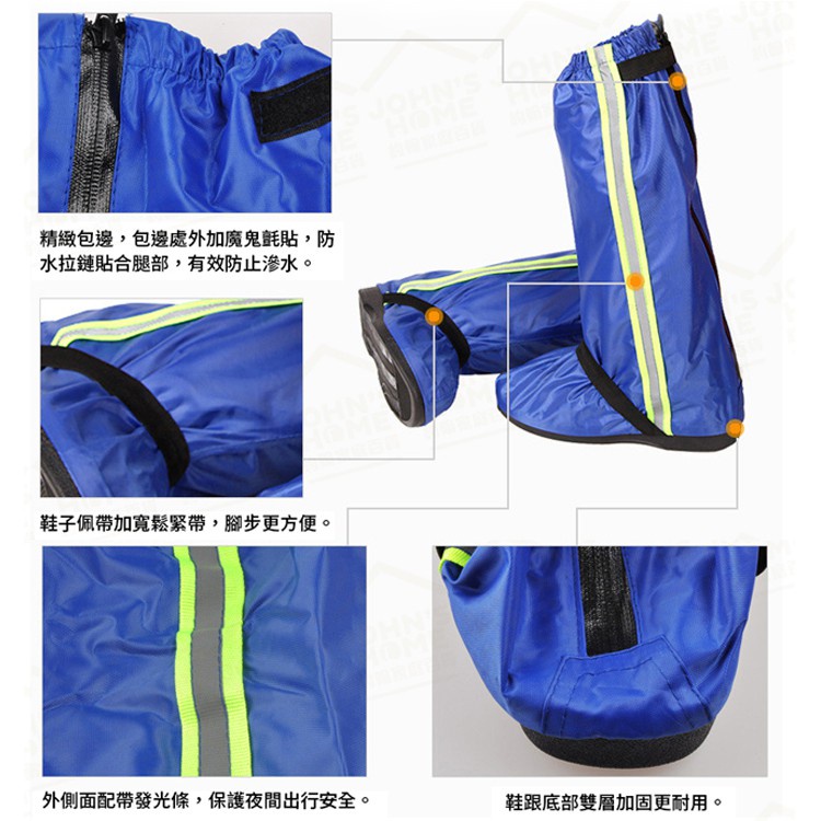 加厚牛津布高筒拉鍊防雨鞋套 夜間反光 防滑橡膠底 成人鞋套 雨靴 騎車鞋套 防水鞋 雨具【ZO0502】 《約翰家庭百貨