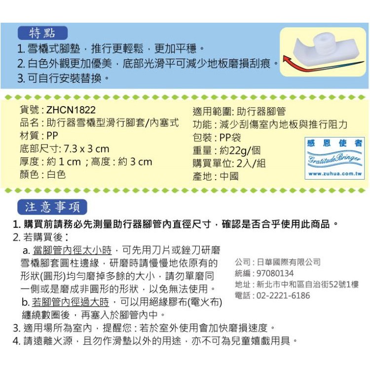 助行器用腳套 - 滑行腳套 雪橇型/內塞式 2入/組 [ZHCN1822]