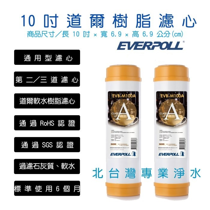 北台灣淨水竹北門市 EVERPOLL EVB M100A 10吋 標準型 前置 軟水 樹脂 濾心 2入組