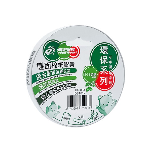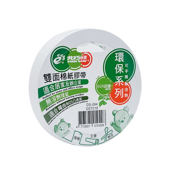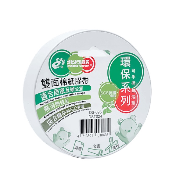 北極熊 雙面膠帶 環保系列 棉紙膠帶 雙面膠【久大文具】0102