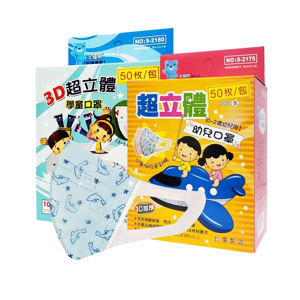 北極熊 3D超立體醫用口罩 (50片/盒) 超立體 立體口罩 幼兒口罩 學童口罩 小尺寸 3D 口罩 【胖胖生活館】