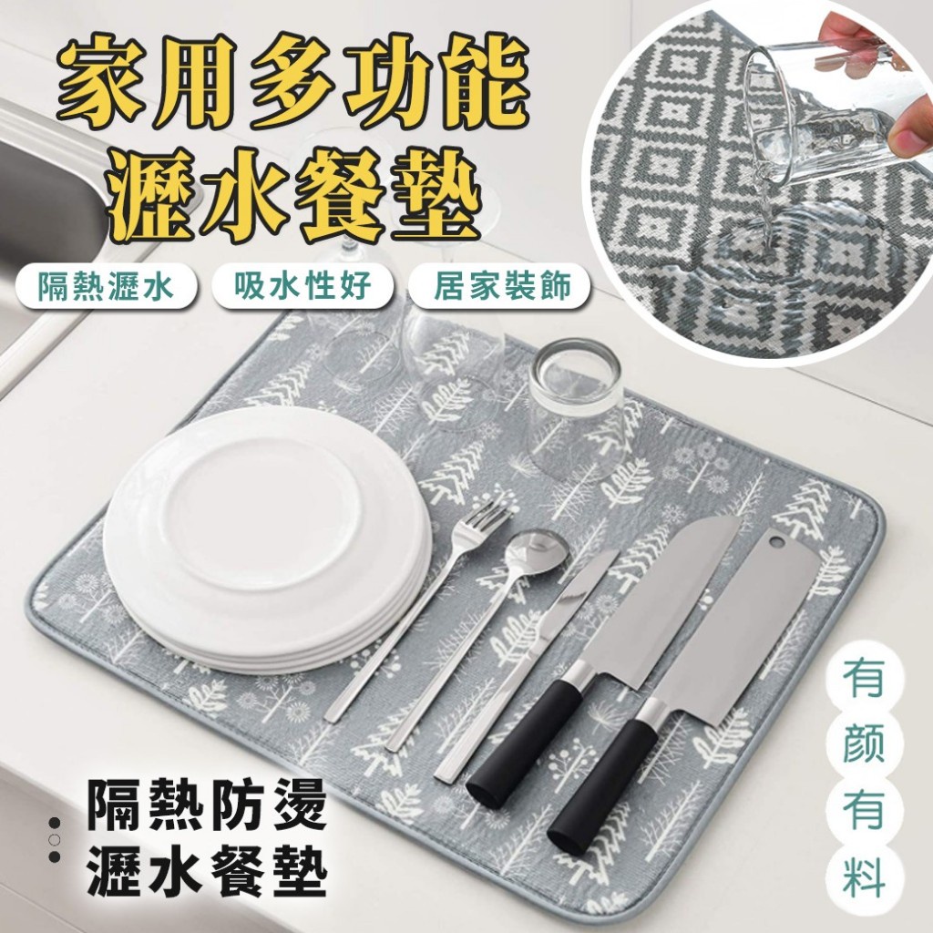 北歐風多功能廚房檯面瀝水隔熱墊 1片 現貨 瀝水餐墊 隔熱防燙墊 吸水墊 餐墊 瀝水墊 桌墊 防燙墊{BK批發小舖}