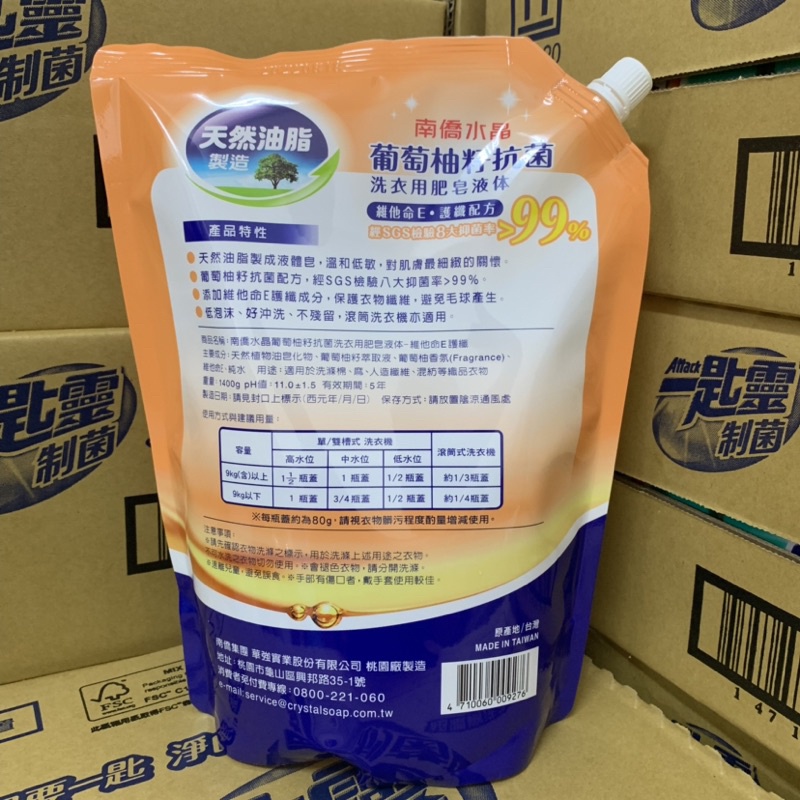 南僑-葡萄柚籽抗菌洗衣精1400克(洗衣用肥皂液體)