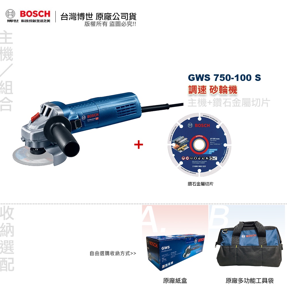 博世 GWS 750-100S 調速 砂輪機 GWS 750-100 S 附發票 全台博世維修中心服務有保障 台灣公司貨