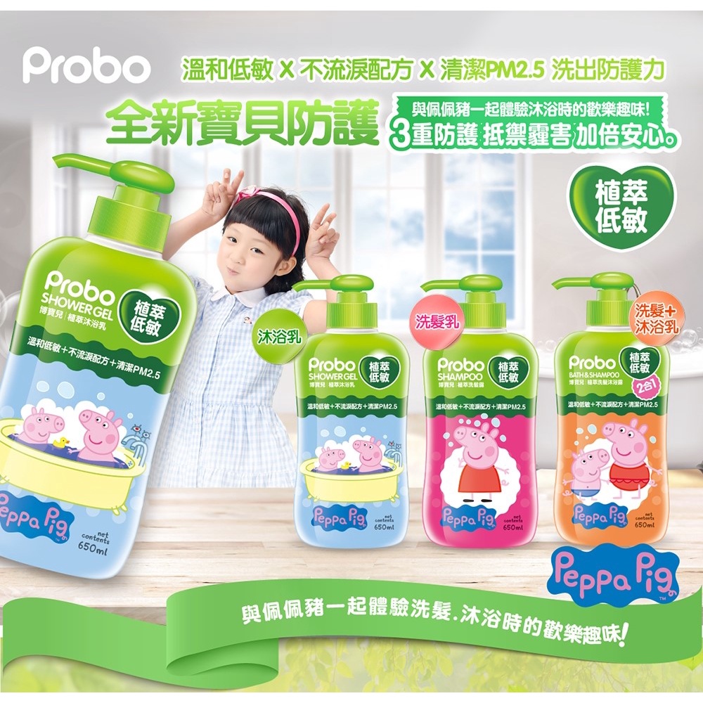 博寶兒 佩佩豬植萃低敏 洗髮沐浴露/洗髮露/沐浴露 650ml Probo【WAGAMAMA】