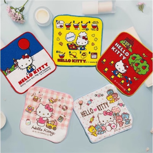 卡通兒童小毛巾 KT 凱蒂貓純棉全棉小方巾 小手帕 寶寶洗臉 幼兒園擦手擦嘴手帕巾 16x16cm