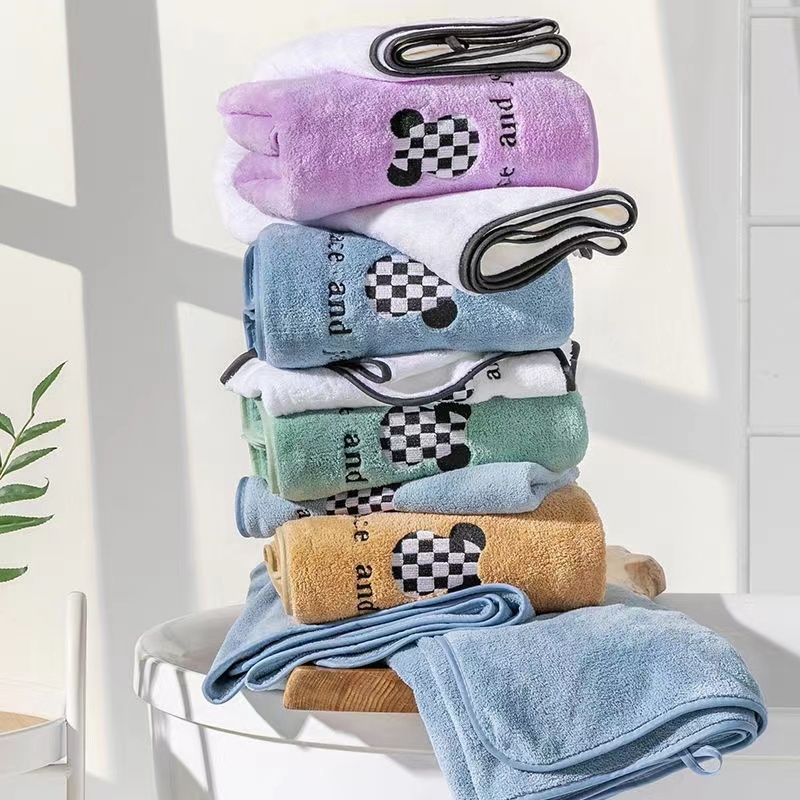 卡通珊瑚絨毛巾浴帽三件套 毛巾 幹髮帽 浴巾 超細纖維 超強吸水力 精細刺繡浴巾 不掉毛 不掉色 衛浴三件套