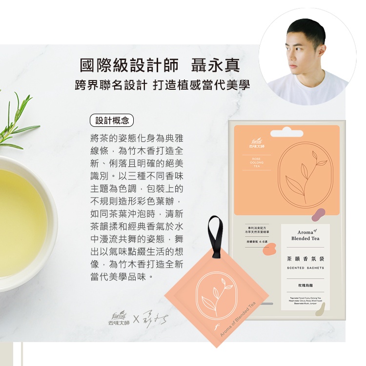 去味大師 X 聶永真聯名設計款 香氛袋(3入) 質感茶香氛 花仙子 Farcent【C220】【熊大碗福利社】