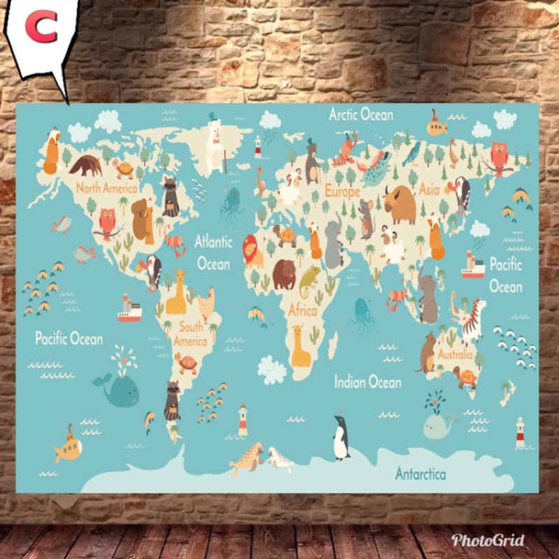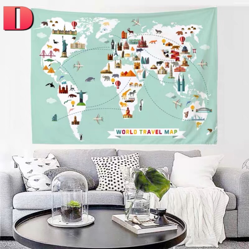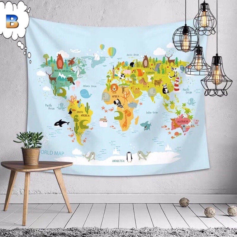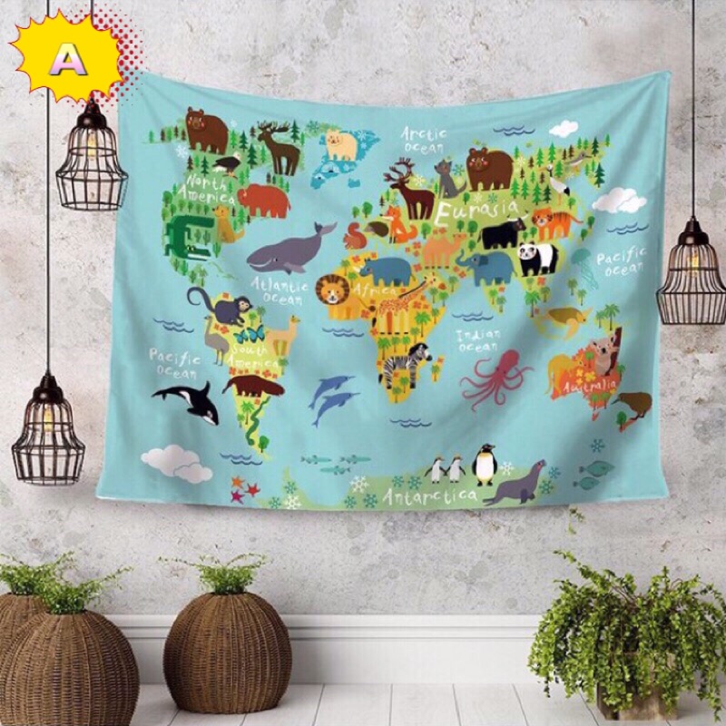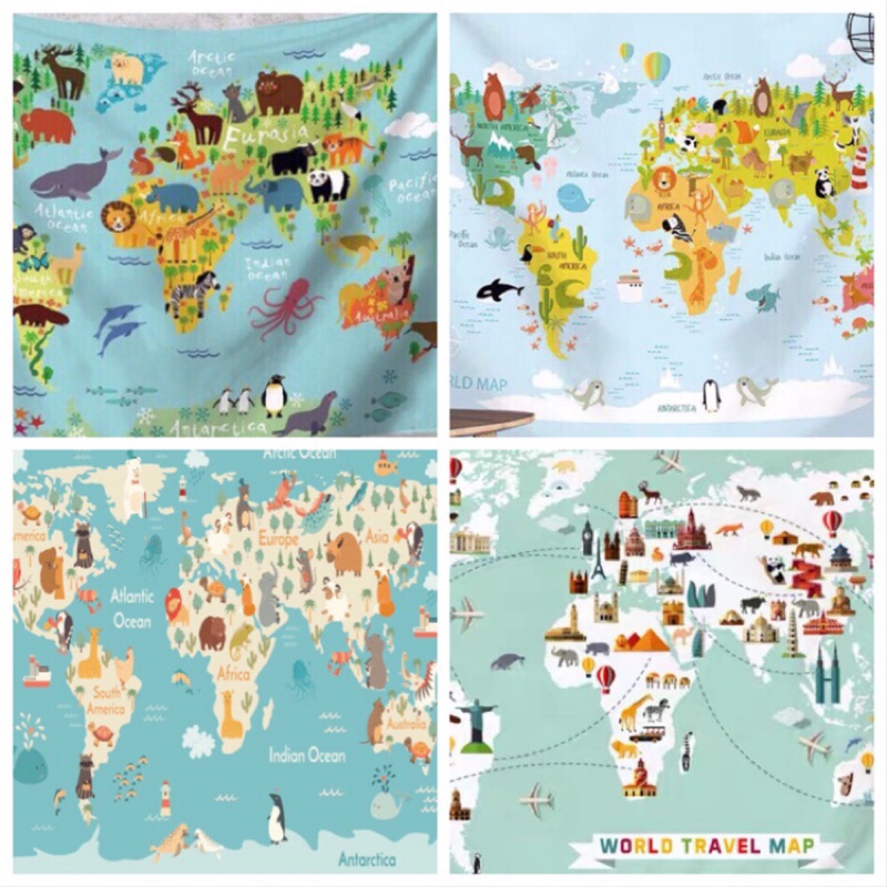 可愛動物世界地圖掛布 背景布 直播 學校佈置 世界地圖 掛毯 桌巾 裝飾 家居