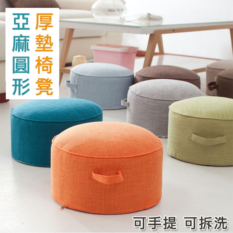 可拆洗 手提亞麻圓形厚墊椅凳 小椅 榻榻米坐墊 沙發椅