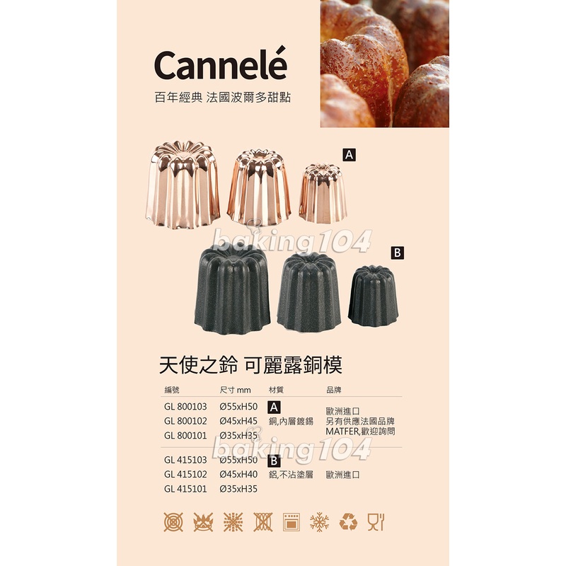 可麗露模 銅模 可露麗 卡納蕾 天使之鈴 Cannelé 波爾多甜點 內層鍍錫 歐洲進口 直徑35/45/55mm