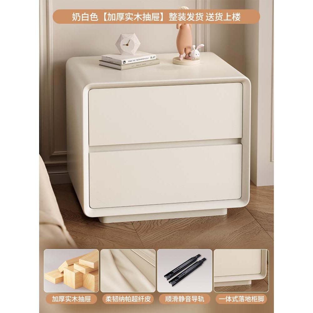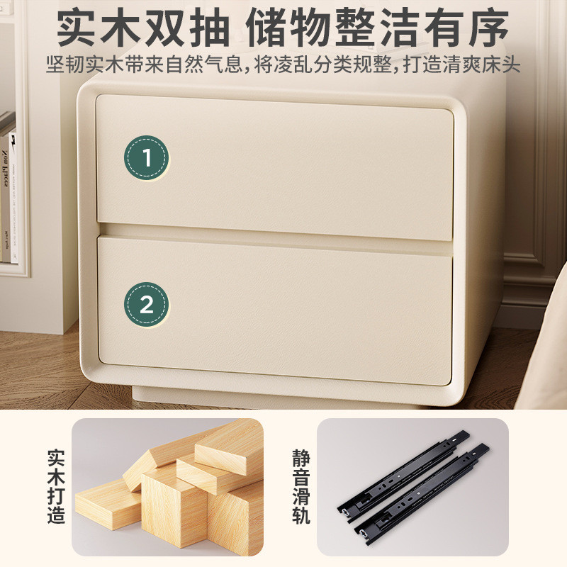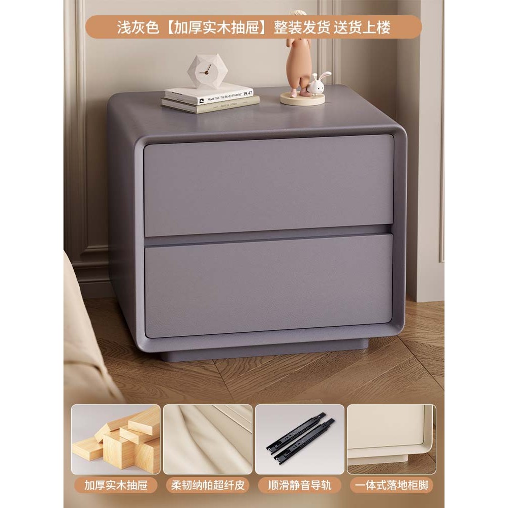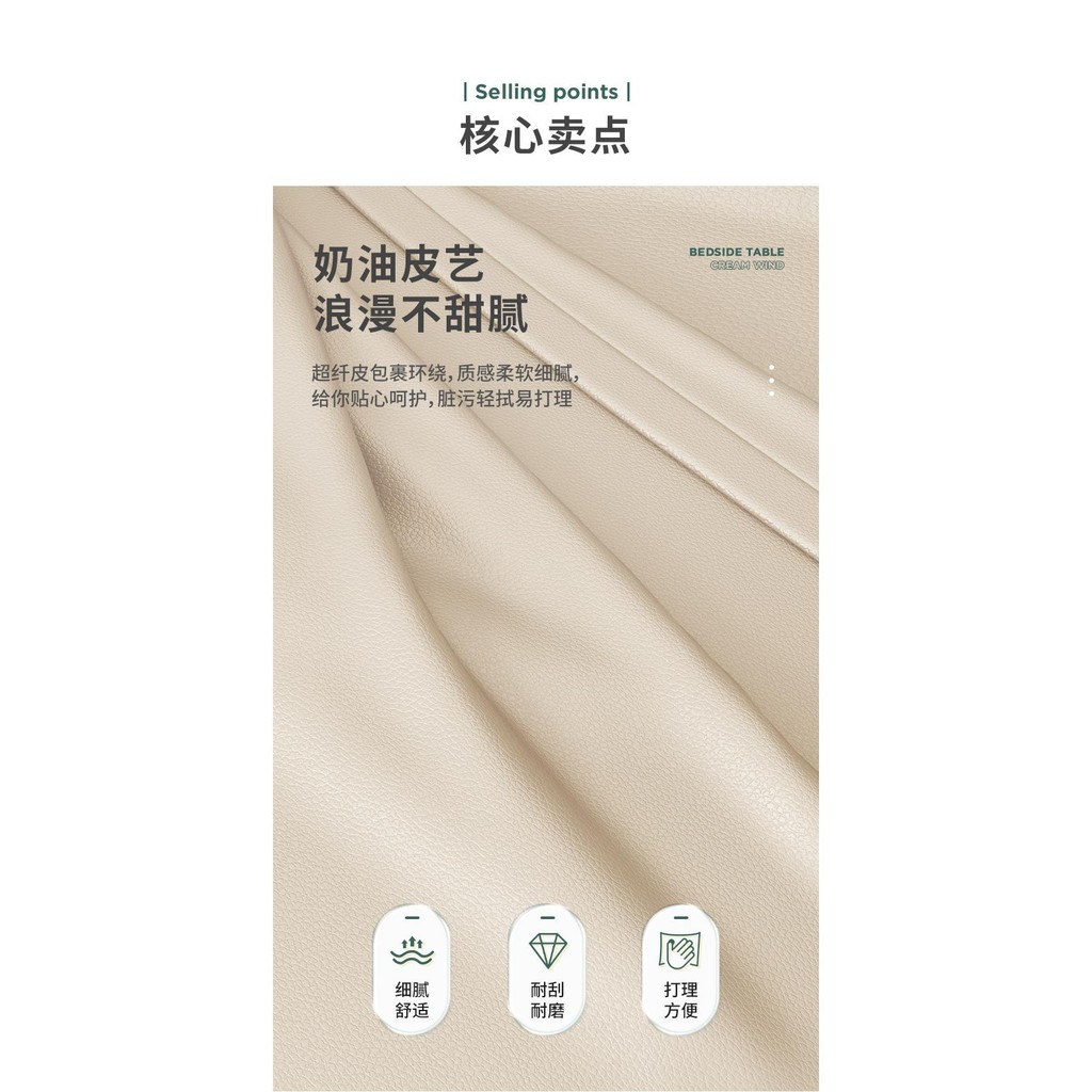 台北現貨 宜洛 月半床头柜 奶油风白色床头柜皮质网红极简智能床边柜收纳柜