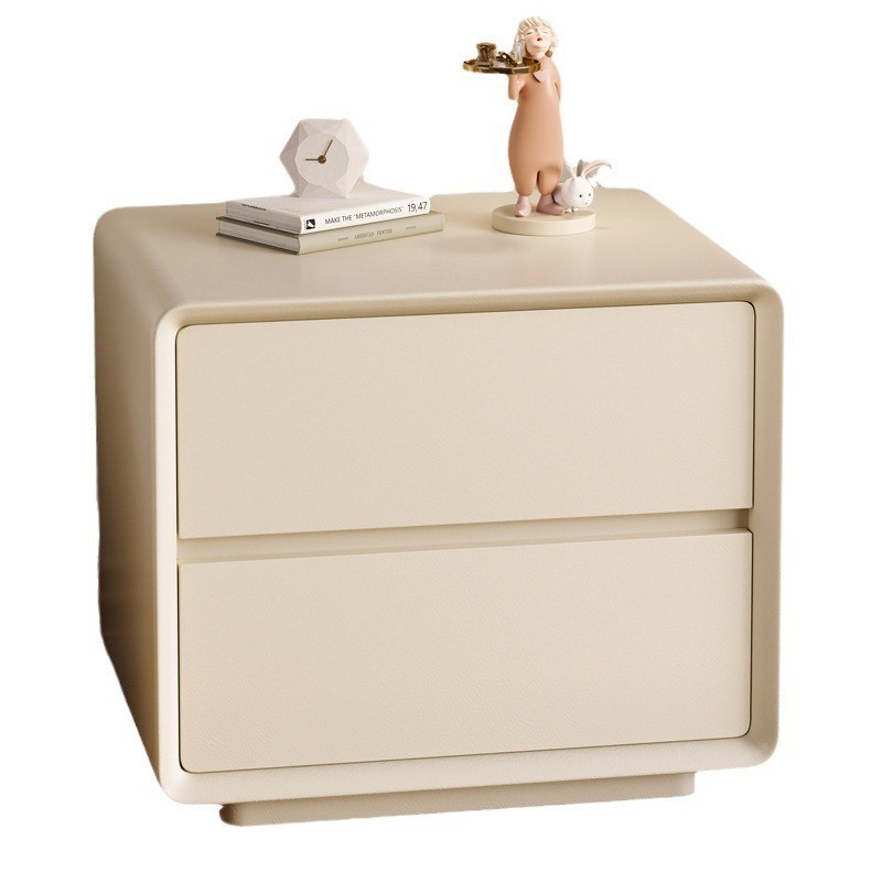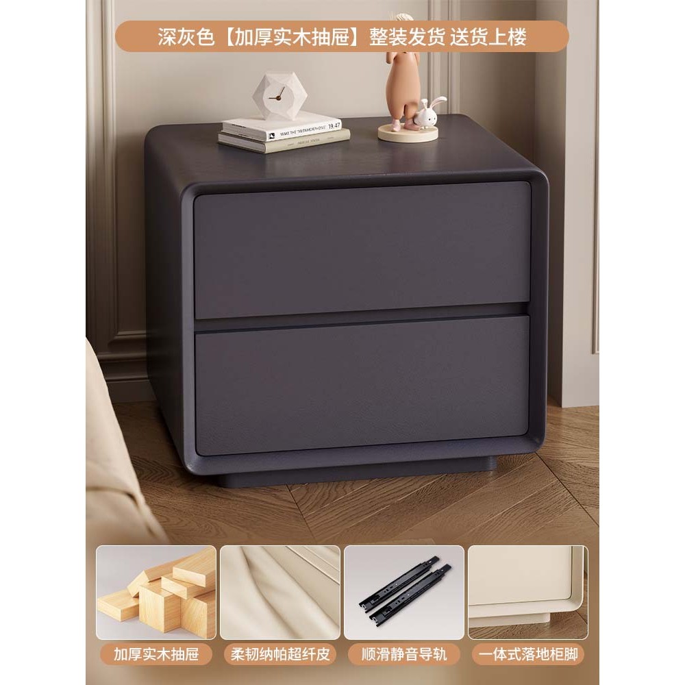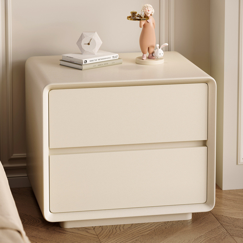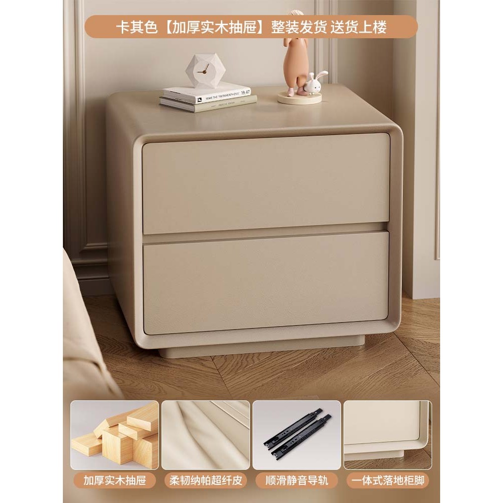 台北現貨 宜洛 月半床头柜 奶油风白色床头柜皮质网红极简智能床边柜收纳柜