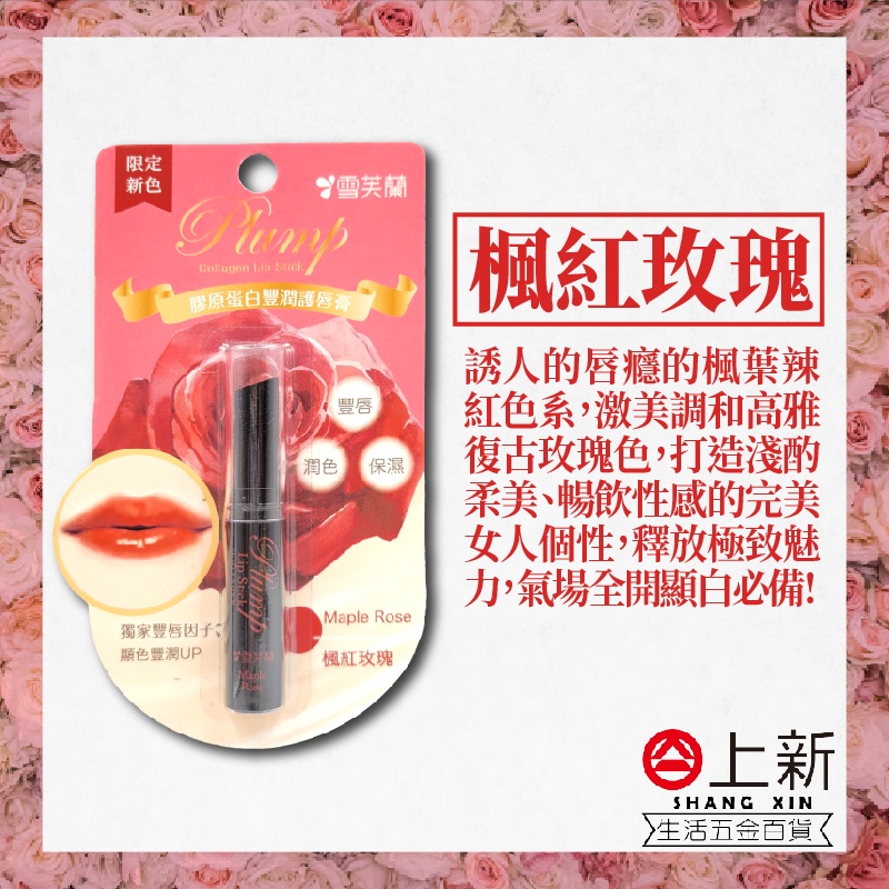台南東區 雪芙蘭 膠原蛋白豐潤護唇膏 護唇膏 潤唇膏 豐唇 保濕 潤色 玫瑰嬌紅 楓紅玫瑰 薔薇霧紅 微醺蜜桃 大地棕紅