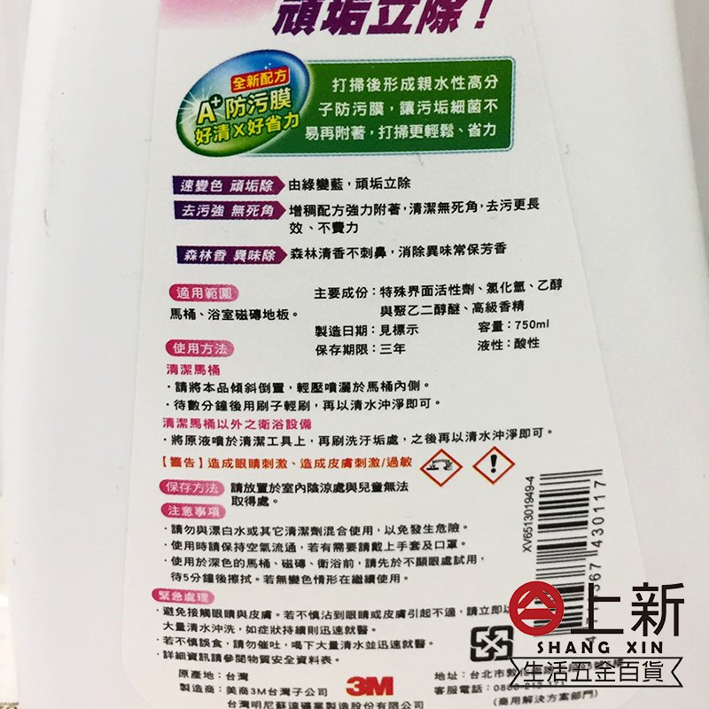 台南東區 3M馬桶清潔劑 魔利馬桶清潔劑 A+防護膜 全新配方 去污、除菌、防垢、除臭、芳香五效合一 森林清香不刺鼻