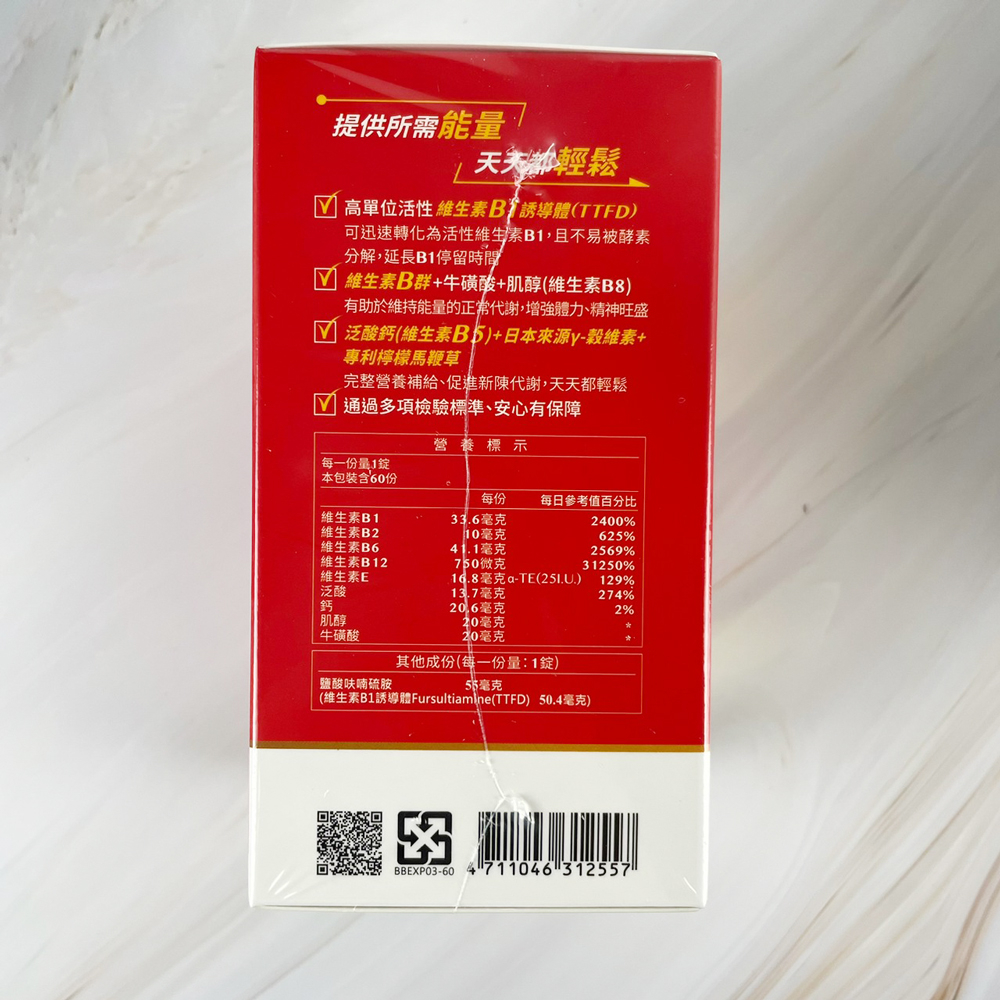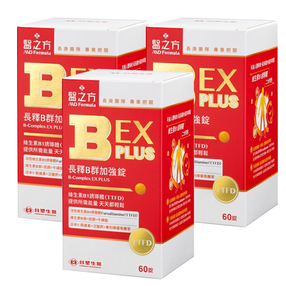 台塑醫之方 長釋B群EX PLUS加強錠60錠/瓶 維生素B群 檸檬馬鞭草 牛磺酸 泛酸鈣