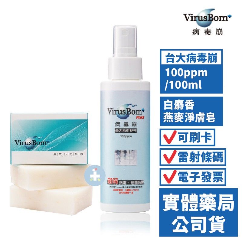 台大病毒崩 100ppm(100ml) 病毒崩 白麝香燕麥淨膚皂 VirusBom 隨身瓶 肥皂 禾坊藥局親子館